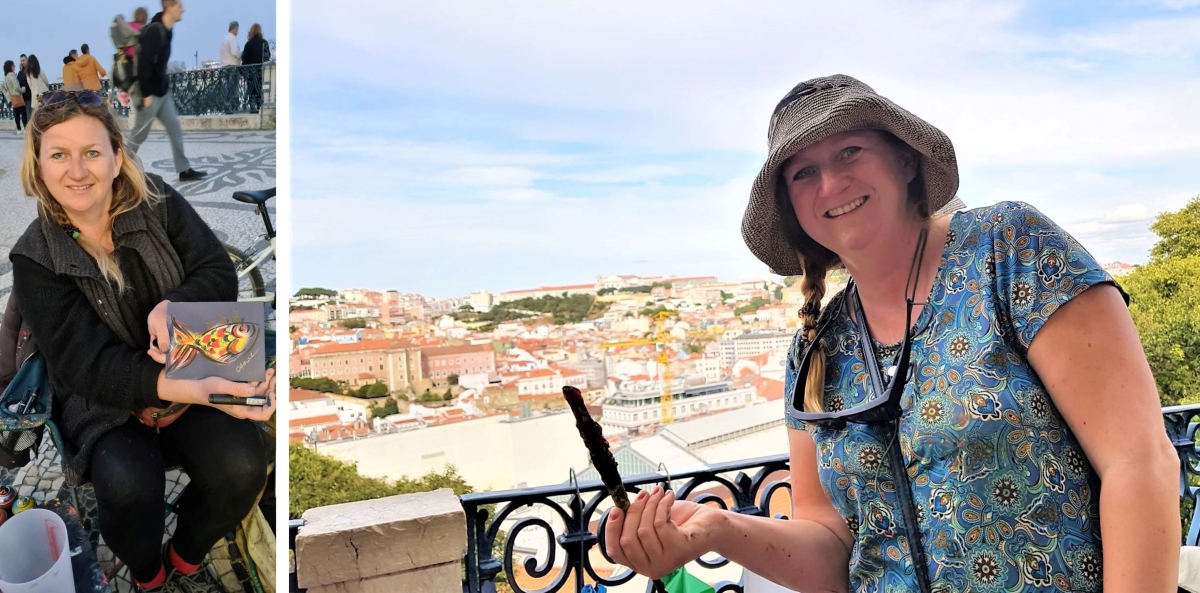 Anne Laidam gehört seit über zwei Jahrzehnten zu Lissabon – vielen kennen sie und sie ist fast so wie berühmt wie Cristo Rei, eine Institution am schönsten Aussichtspunkt Lissabon. Anne ist mit Leib und Seele Künstlerin, Malerin und Buch-Illustratorin, die sich nicht zu schade ist, ihre bunt bebilderte Straßenkunst an Touristen zu verkaufen.